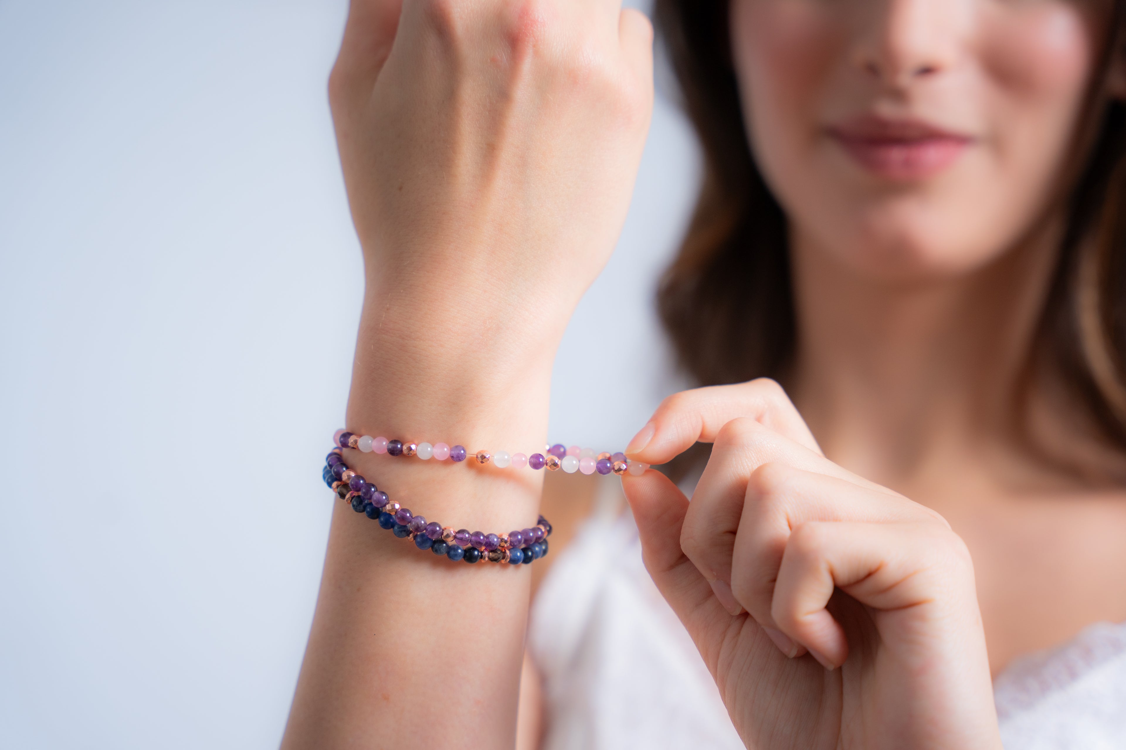 Onze armbanden worden met zorg samengesteld uit echte edelstenen die niet enkel schoonheid uitstralen, maar ook innerlijke balans en harmonie bevorderen.